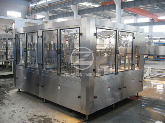 1、瓶裝水生產線整機采用卡瓶頸懸掛運行工態(tài)設計,從而使瓶在高速運行狀態(tài)下平穩(wěn)、可靠,同時大大減少了變更件的數(shù)量使更換瓶型時更加方便、快捷。